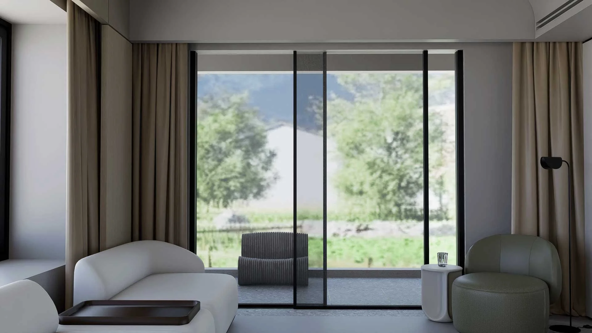 Slider quantity is determined by sash weight. Magnetic levitation evenly distributes the load, allowing wide openings with slim frames.